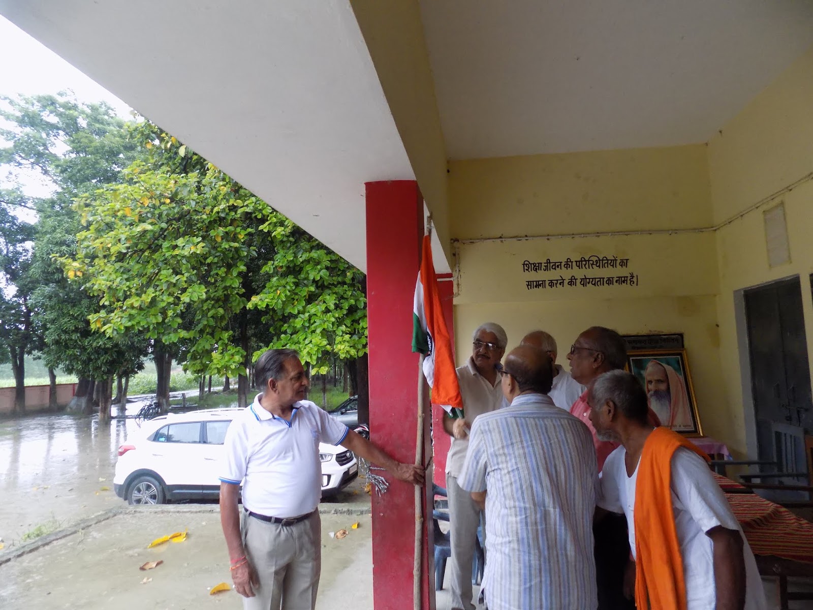 ‘Swami Parmanand Shiksha Niketan Khamhariy Shukla’ celebrated the 72nd anniversary of Independence Day with great enthusiasm. When we reached the school at 8.00 in the morning, the young people and their teachers had gathered there. It was raining hard. They received us with the slogan: “Bharat Maata ki Jia!” Then they made rows before the Tricolour waiting to be hoisted. Mohan Lal Goel, the president of Akhand Paramdham Samiti Bahraich, hoisted the national flag and with that the school premises echoed with the Jai Ghosh: “Swantrata Divas amar rahe!” Two school children recited the National Anthem to the gathering. After that the children performed cultural programmes. Sweet was distributed among them and everyone was very happy.